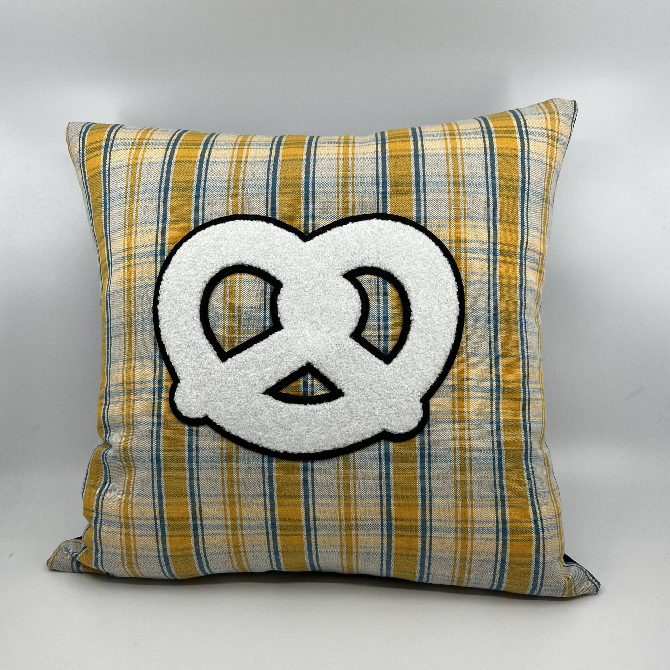 Coussin en kelsch alsacien jaune motif bretzelCoussin Bretzel, Kelsch jaune «Joséphine»