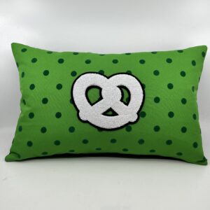 Soyez le premier à laisser votre avis sur “Coussin Bretzel, toile verte, pois velours .”