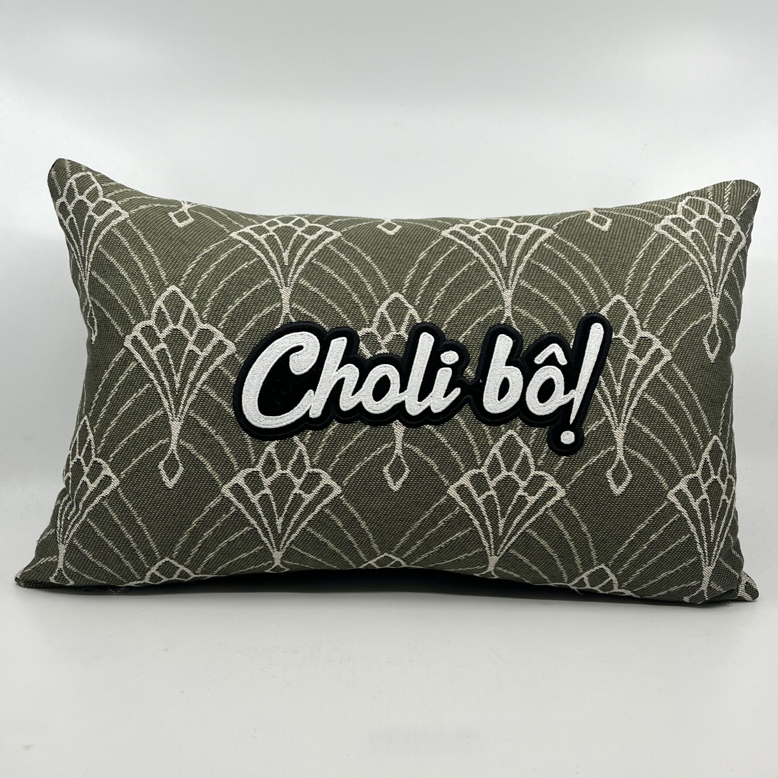 Coussin Choli bô ! Motif “Art Déco” vert.