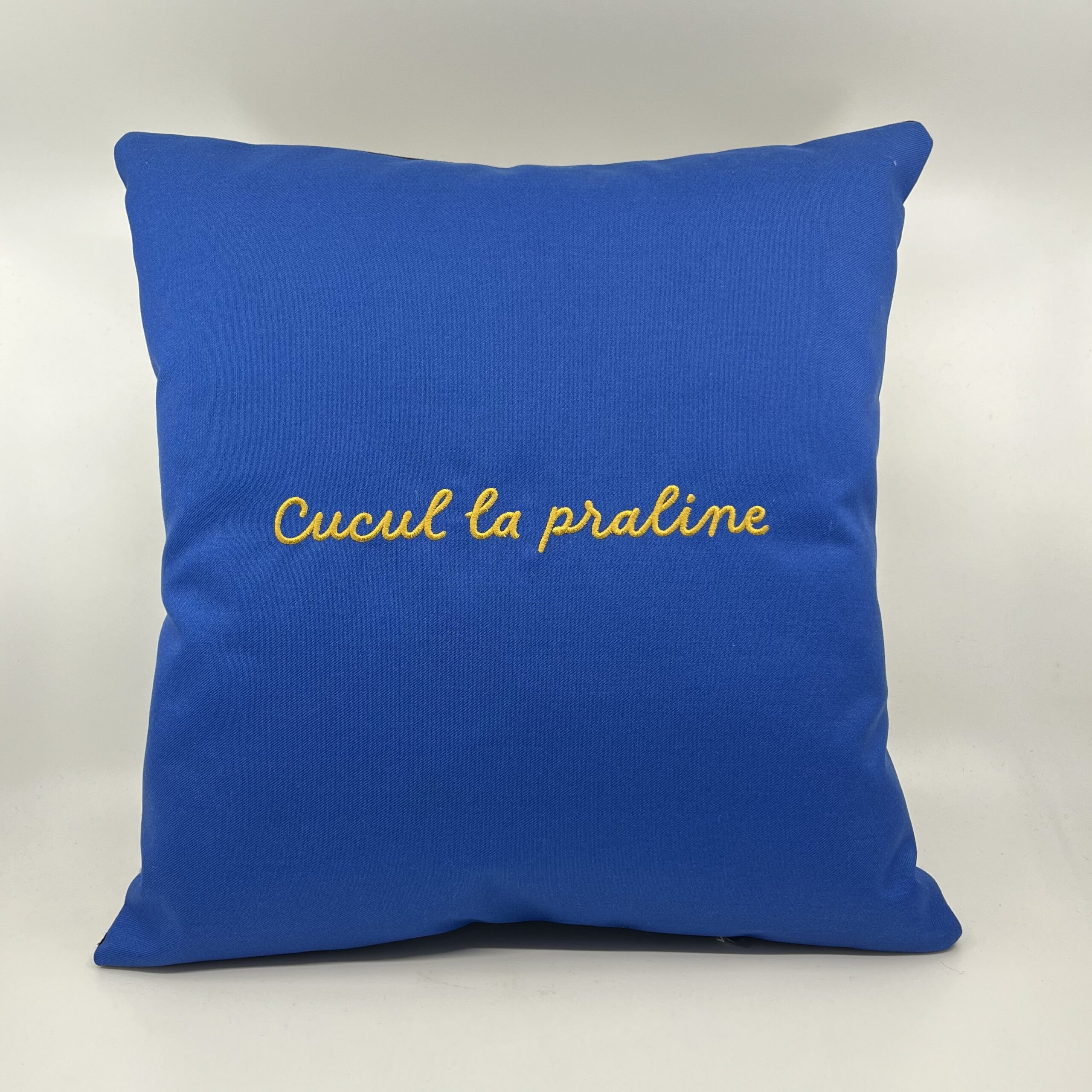 Soyez le premier à laisser votre avis sur “Coussin, « Cucul la praline »Toile bleue”