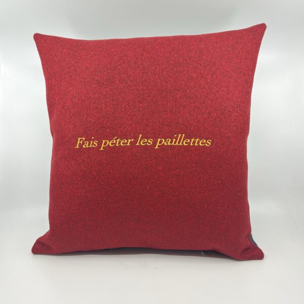 Soyez le premier à laisser votre avis sur “Coussin, « Fais péter les paillettes » lainage rouge”