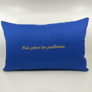 Soyez le premier à laisser votre avis sur “Coussin, « Fais péter les paillettes » Toile bleue”
