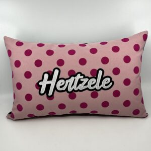 Soyez le premier à laisser votre avis sur “Coussin Hertzele, toile rose, pois roses velours”