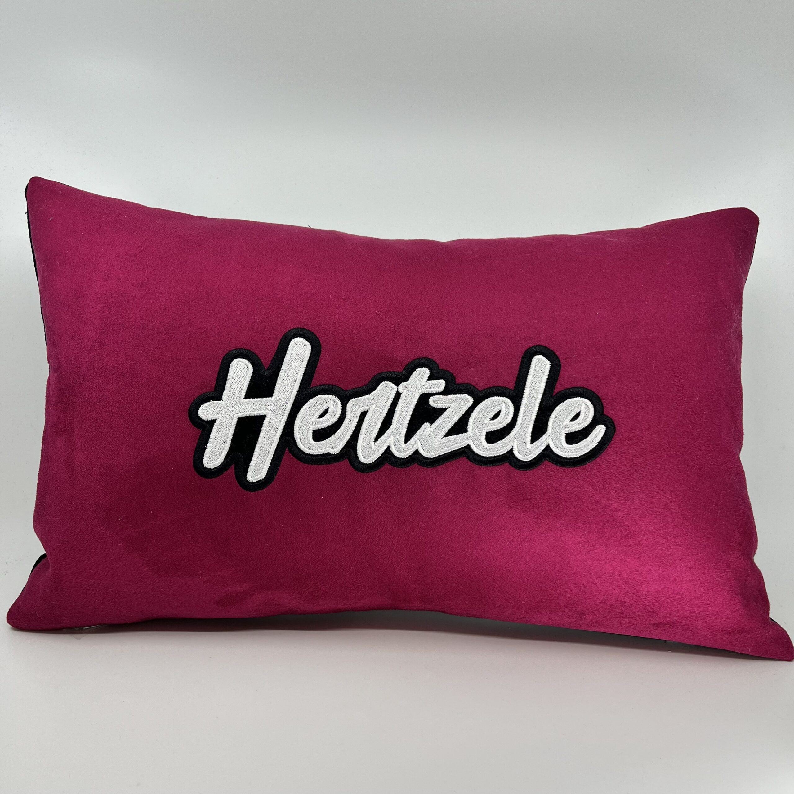 Coussin Hertzele, suédine fuchsia.Coussin Hertzele, suédine fuchsia.