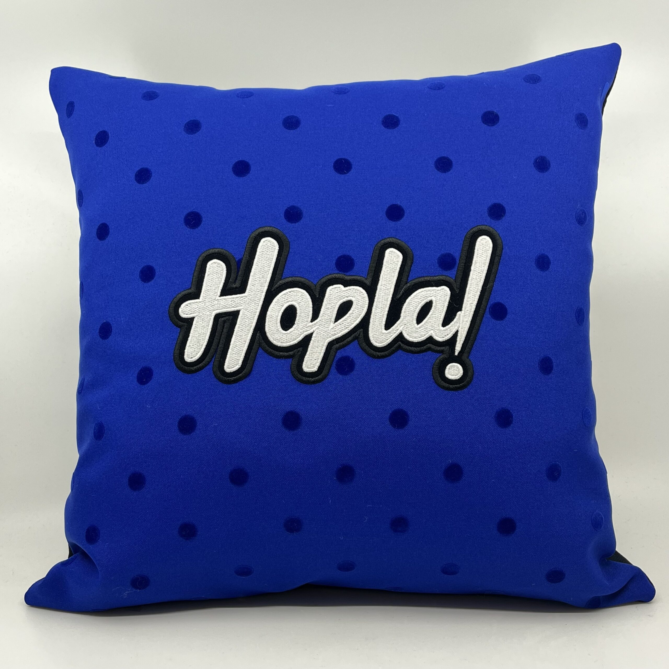 Toile bleue, pastilles velours.Disponibilité : 1 en stock