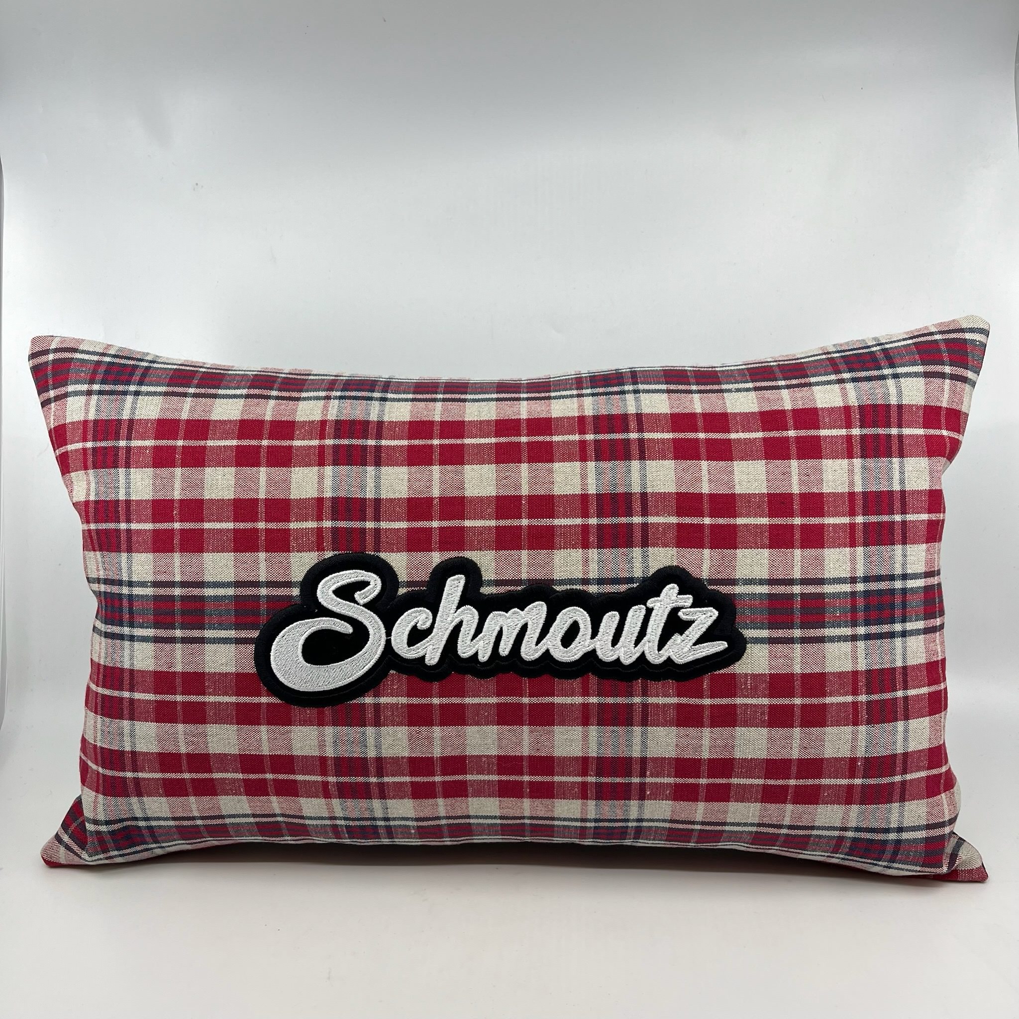 Coussin kelsch grands carreaux rouge-bleu Schmoutz