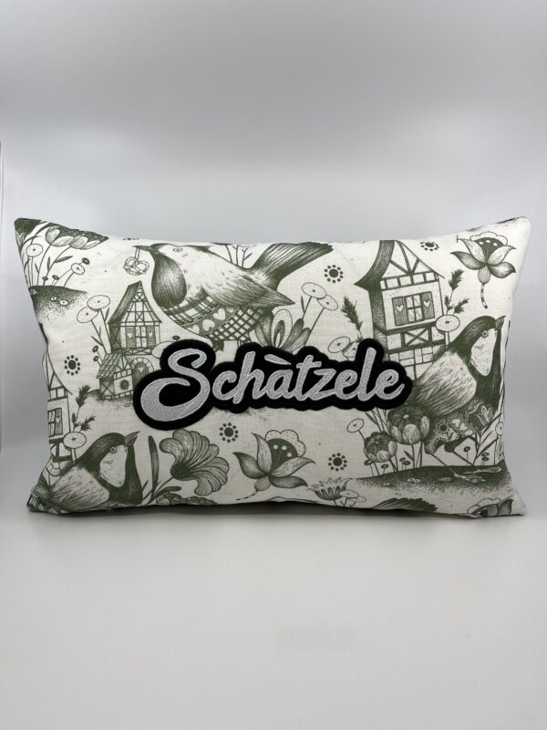 Coussin Schàtzele vert, collab’ MissyCoussin Schàtzele vert, collab’ Missy