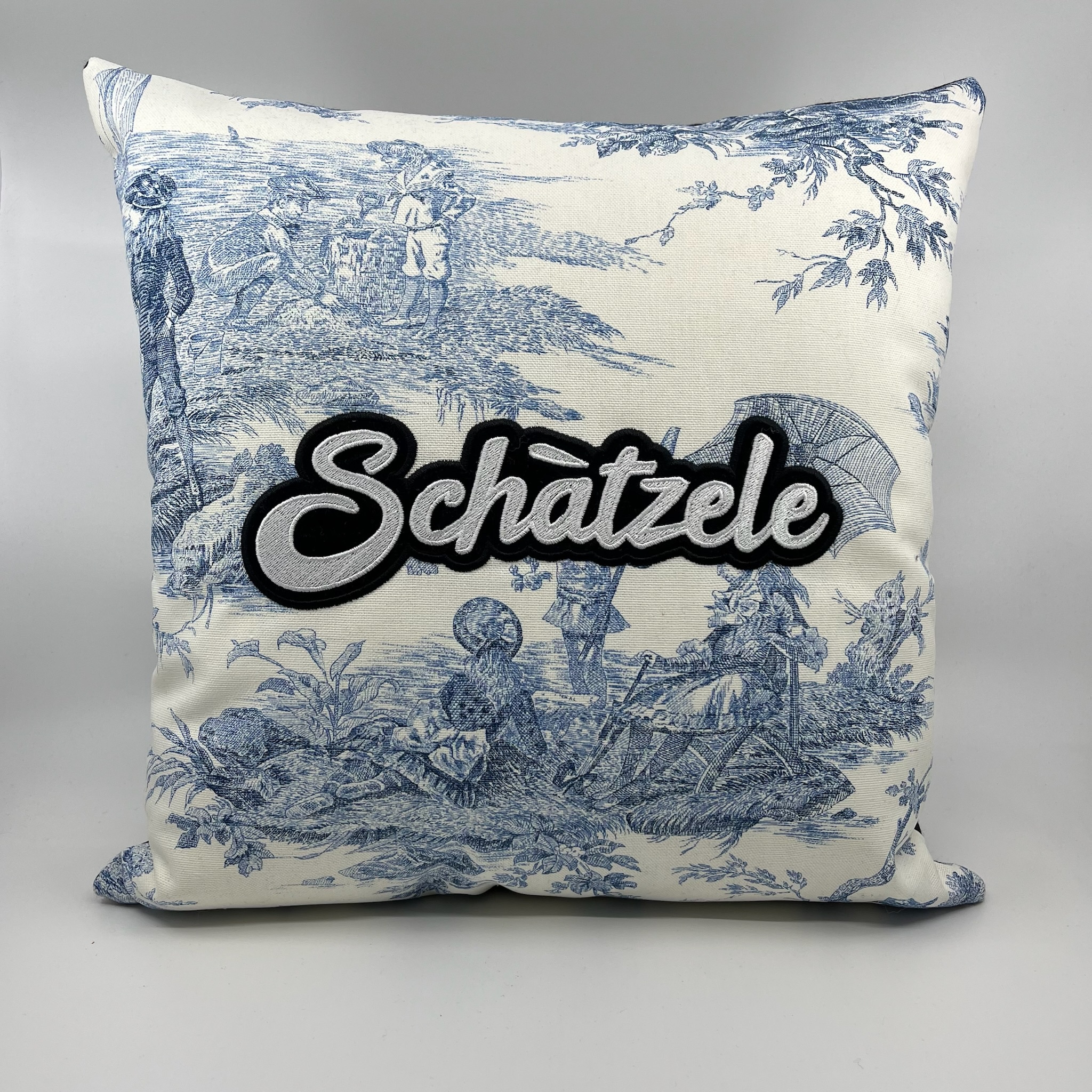 Soyez le premier à laisser votre avis sur “Coussin Schàtzele, toile de Jouy bleue”