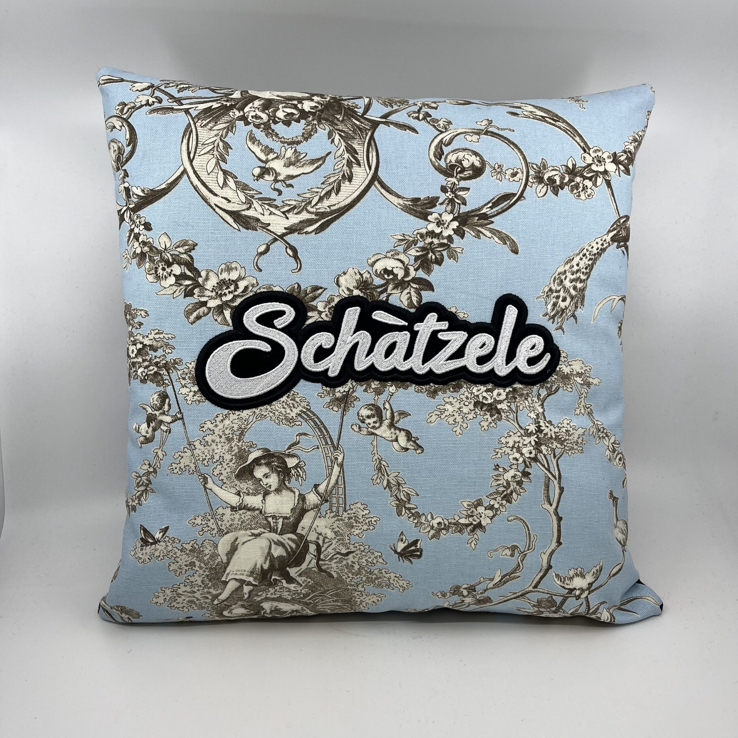 Coussin Schàtzele, toile de JouyCoussin Schàtzele, toile de Jouy