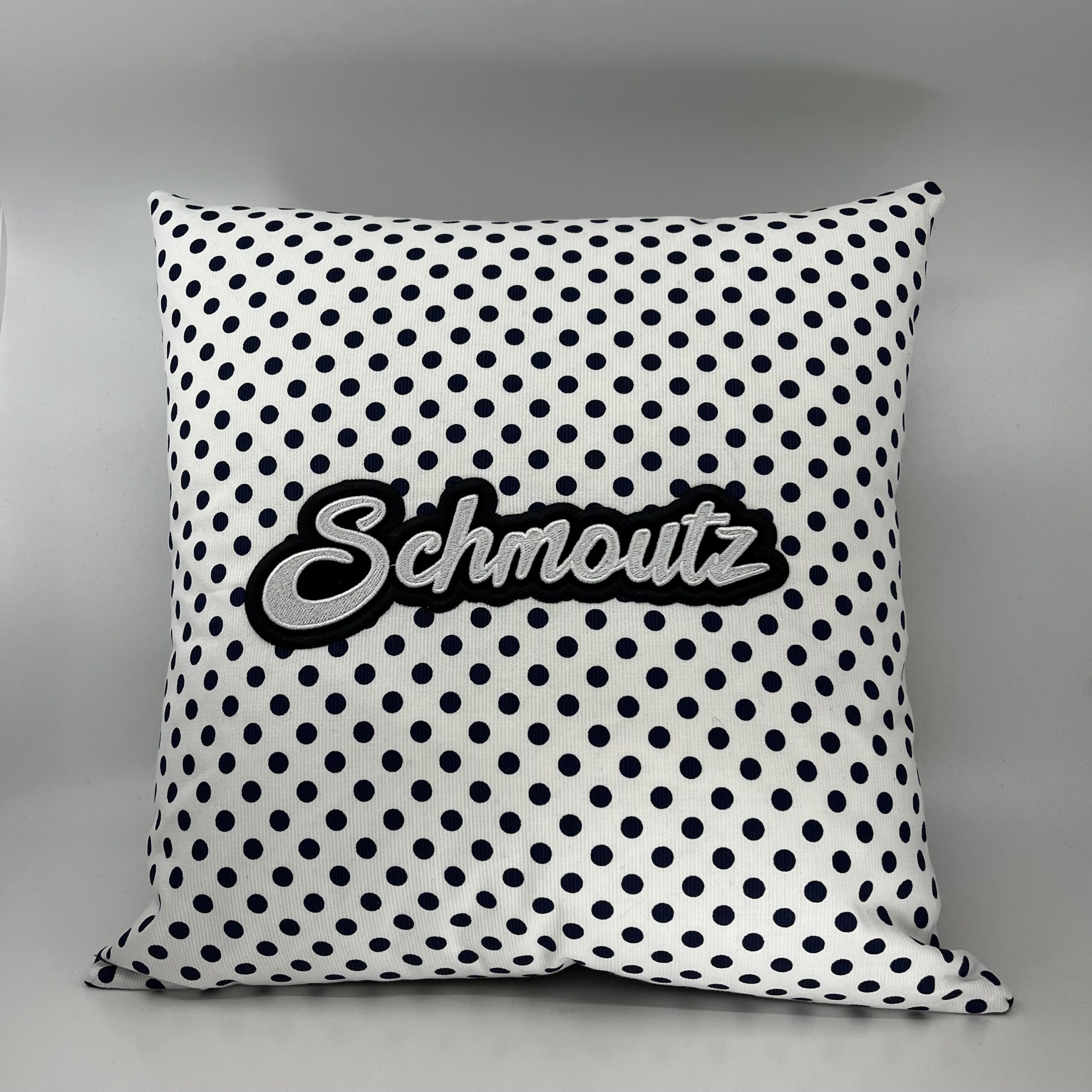 Soyez le premier à laisser votre avis sur “Coussin Schmoutz, toile blanche-pois bleus”
