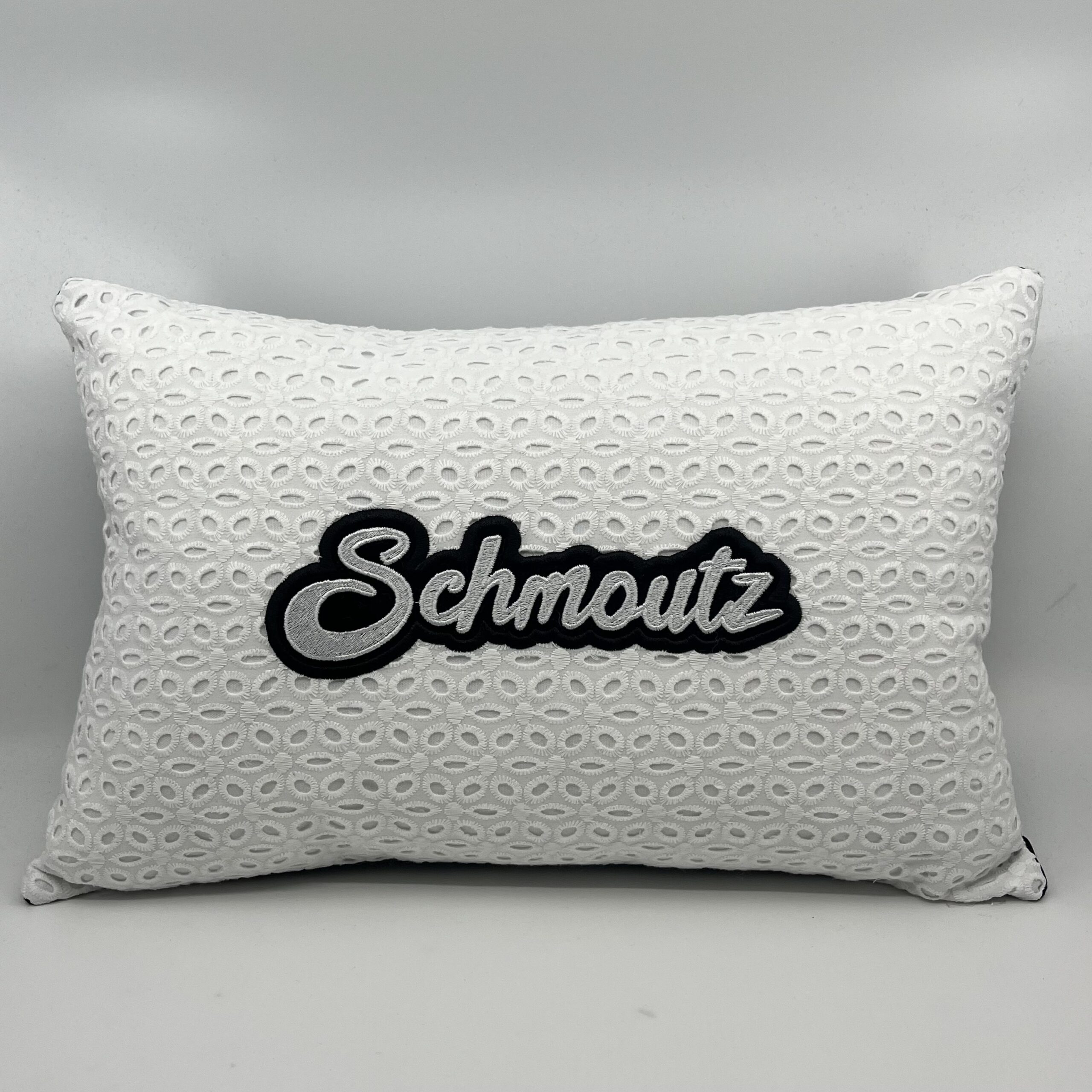 Coussin Schmoutz, Broderie Anglaise.